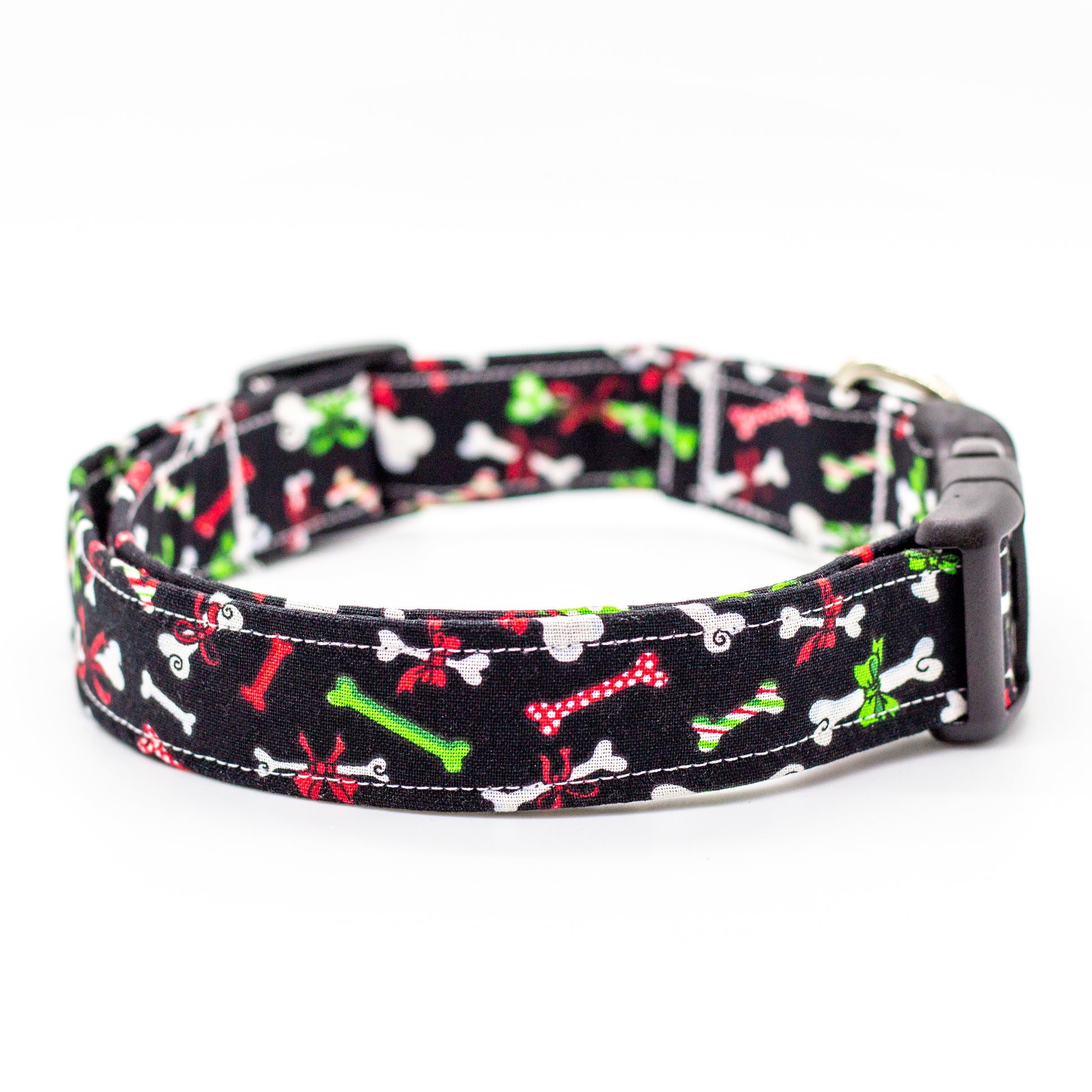 Transform your pup into the life of the paw-ty with Jingle Bones! Our stylish dog collar and bowtie combo features a sleek black background with playful dog bones, some with adorable patterns and others adorned with cute bows. Perfect for any occasion, your furry friend will surely stand out in the pack.