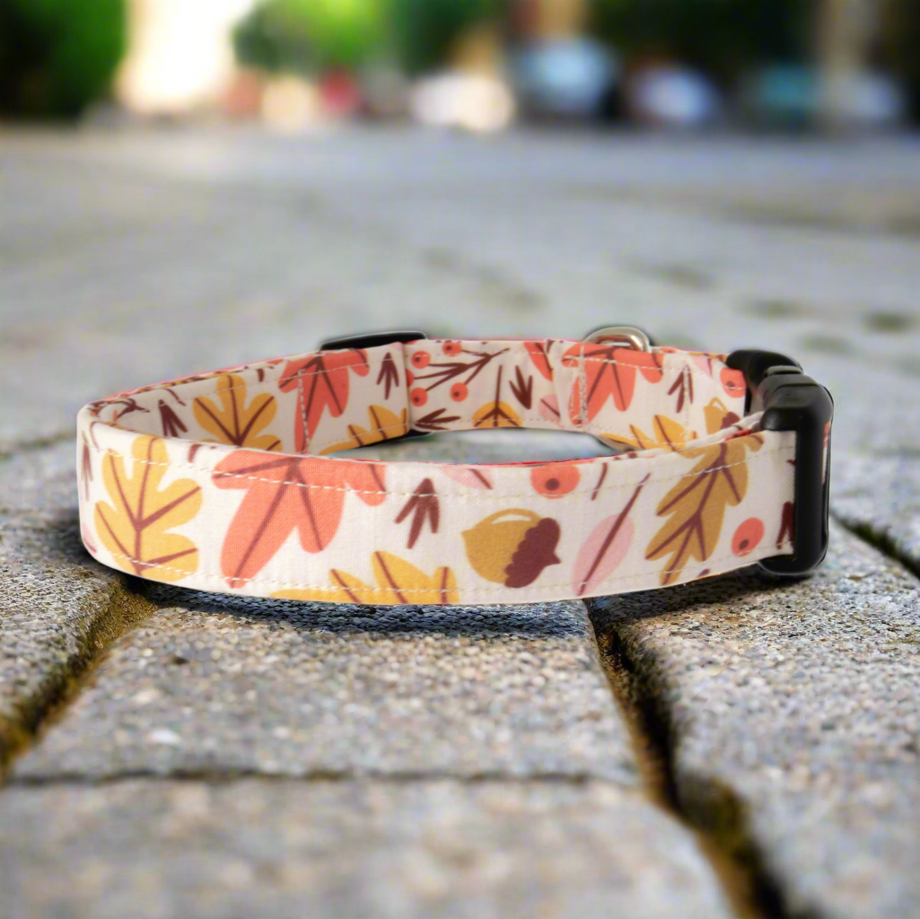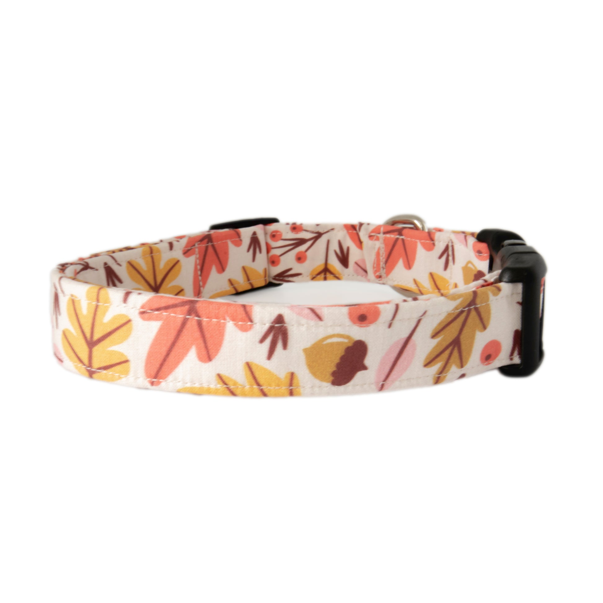 Transform your dog into the most stylish pup on the block with Little Acorn Lane! The cream background adorned with fall leaves and acorns in burnt orange, yellow, and light pink will add a touch of autumn charm. Pair it with one of our pink, orange, or yellow chiffon flowers for an extra pop of color. Your furry friend will be the talk of the town!